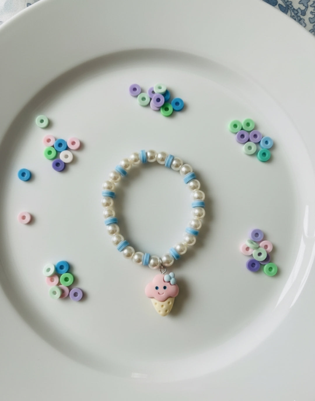 This charming bracelet is a lovely blend of classic and cute! It features smooth, creamy pearls interspersed with soft blush-pink spacer beads, creating a delicate, feminine look. A beautifully detailed strawberry cupcake charm is suspended from the bracelet, adding a playful, romantic touch. Ideal for tea parties, springtime outfits, or everyday sweetness.